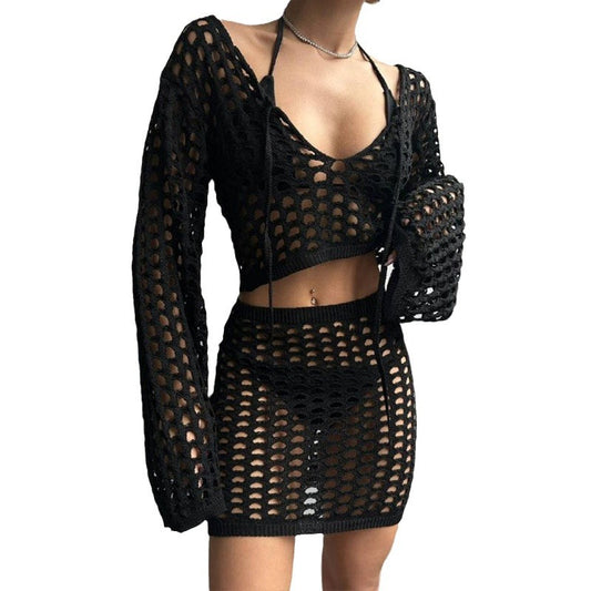 Knitted Hollow Swimsuit Blouse