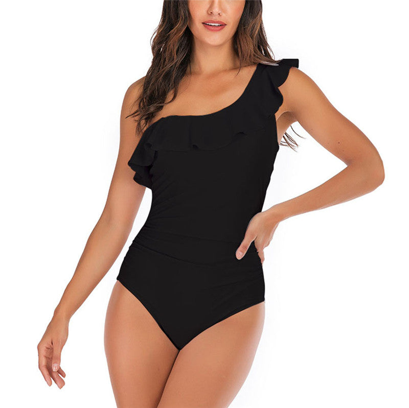 Solid Color Ruffled One-shoulder